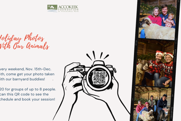 Holiday Photos with the Animals is baa-ck in the barnyard! Join the Accokeek Foundation, weekends from November 15-December 14, and get your picture taken with one of the farm's Hog Island sheep or Spanish goats.