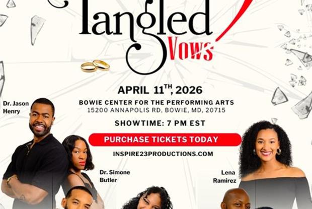 Join us on Saturday, April 11, 2026, at 7:00 PM at the Bowie Center for the Performing Arts Center for an unforgettable evening filled with love, laughter, and emotional twists. Tangled Vowstakes you inside the lives of three couples navigating the complexities of love, marriage, and loyalty. As they face the pressures of their relationships, they turn to couples’ counseling to strengthen their bonds. But as hidden feelings and long-buried secrets are revealed, each couple must confront the consequences of what’s been left unsaid.